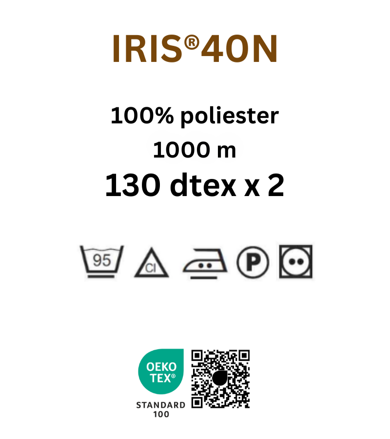 IRIS is a specialist machine embroidery thread made of high-quality, glossy polyester silk. Modern thread production technology guarantees high tearing strength and high color fastness to light, washing, rubbing and water.